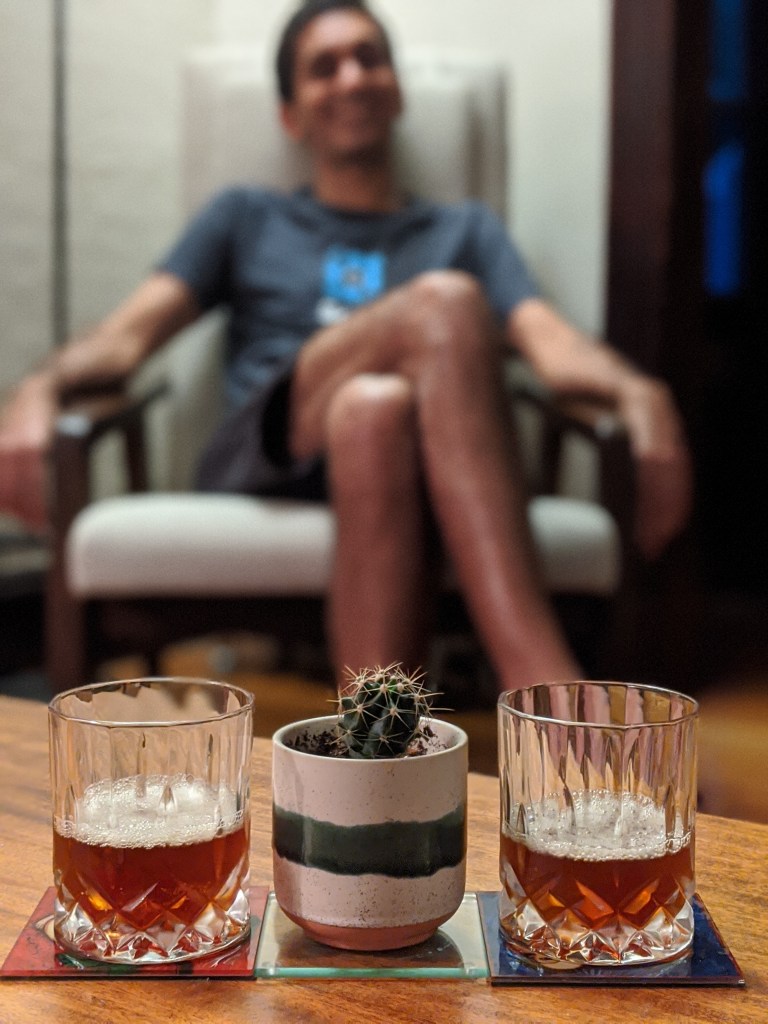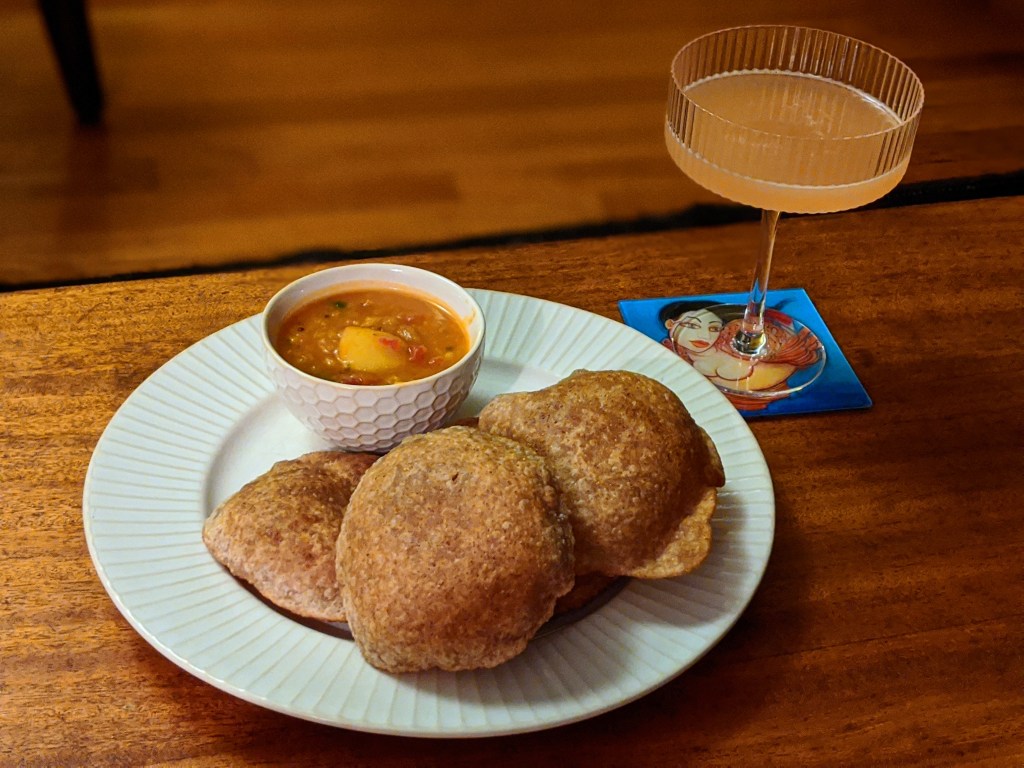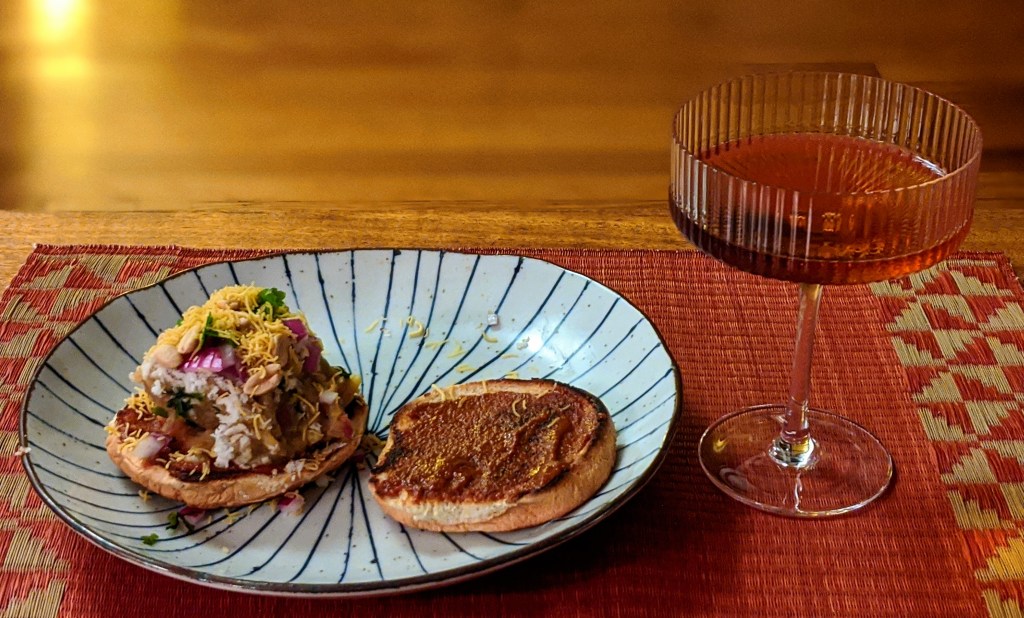 I don’t think I remember the last time I ate one and only vaguely remembered what it tasted like. An explosion of taste and texture, as V describes it. Dabeli is a popular street snack in Mumbai and Gujarat. Topped it with my favorite, Manhattan.